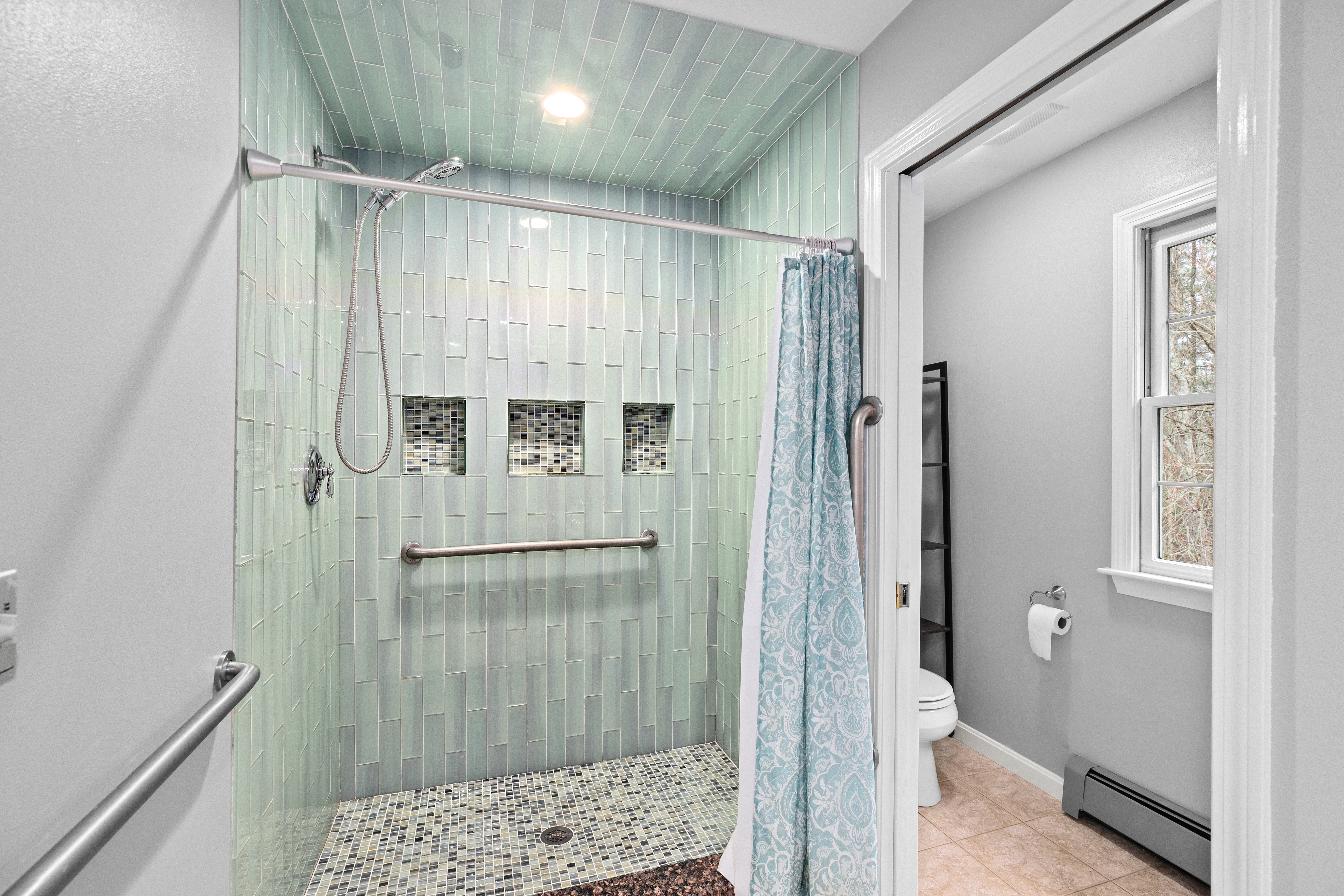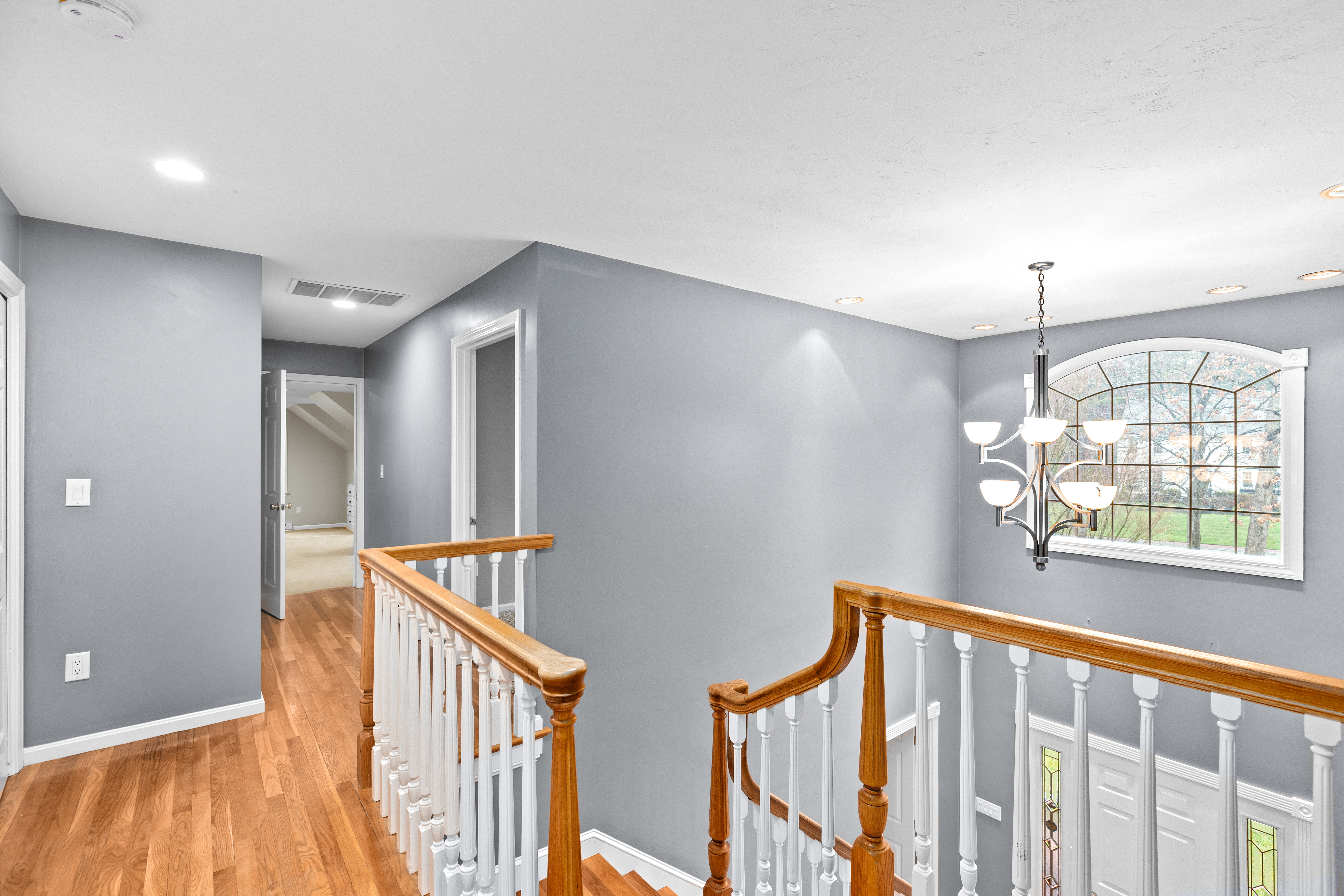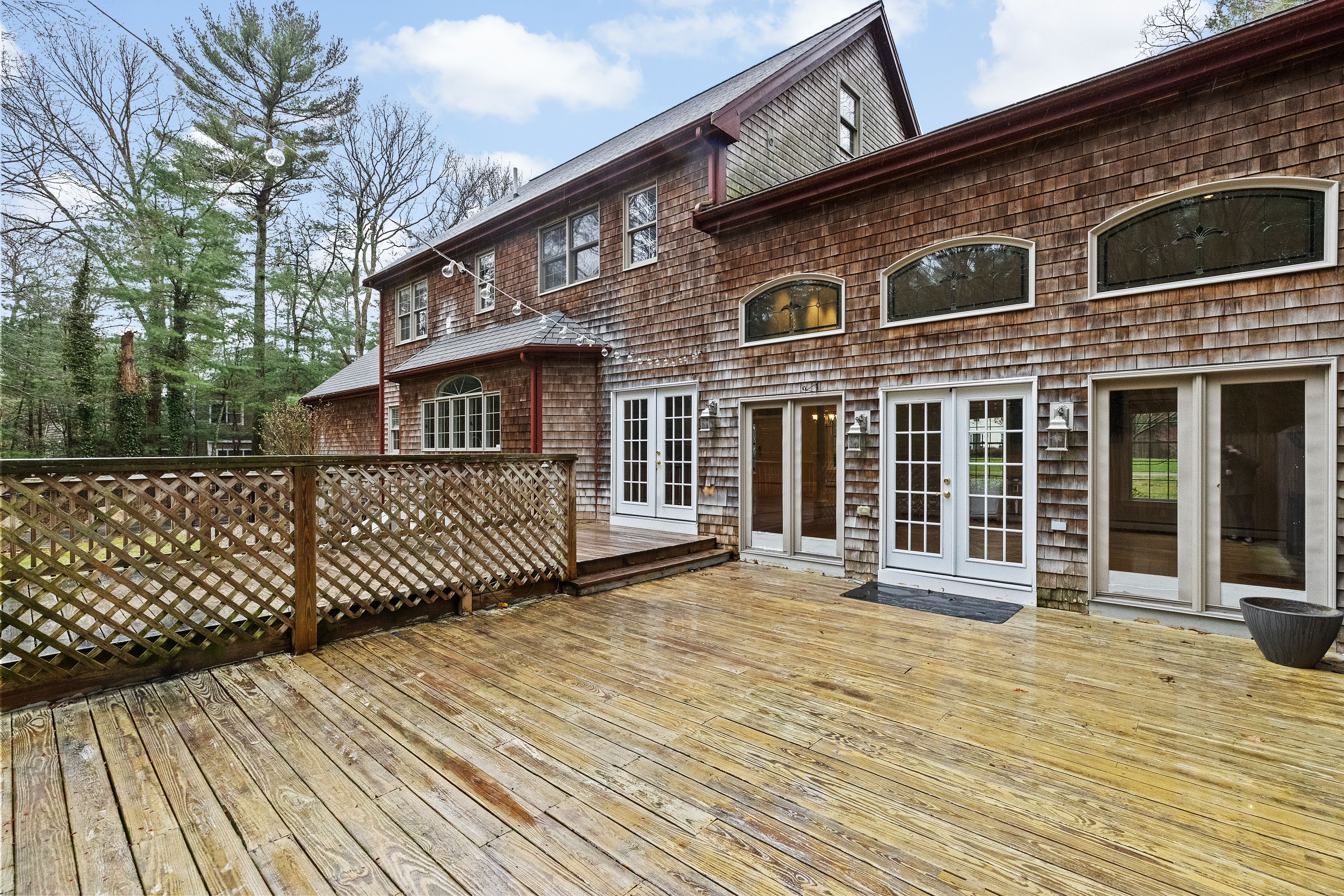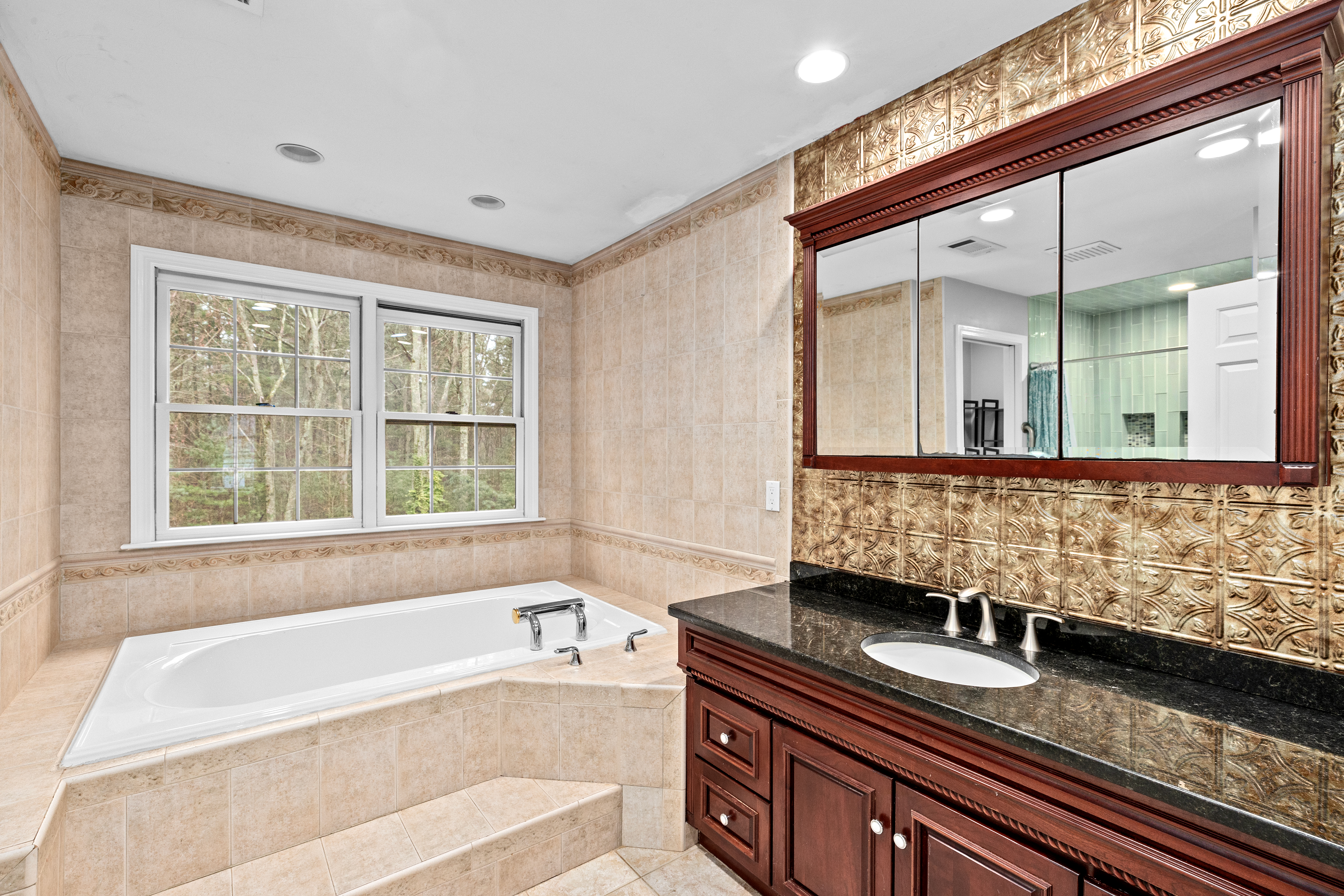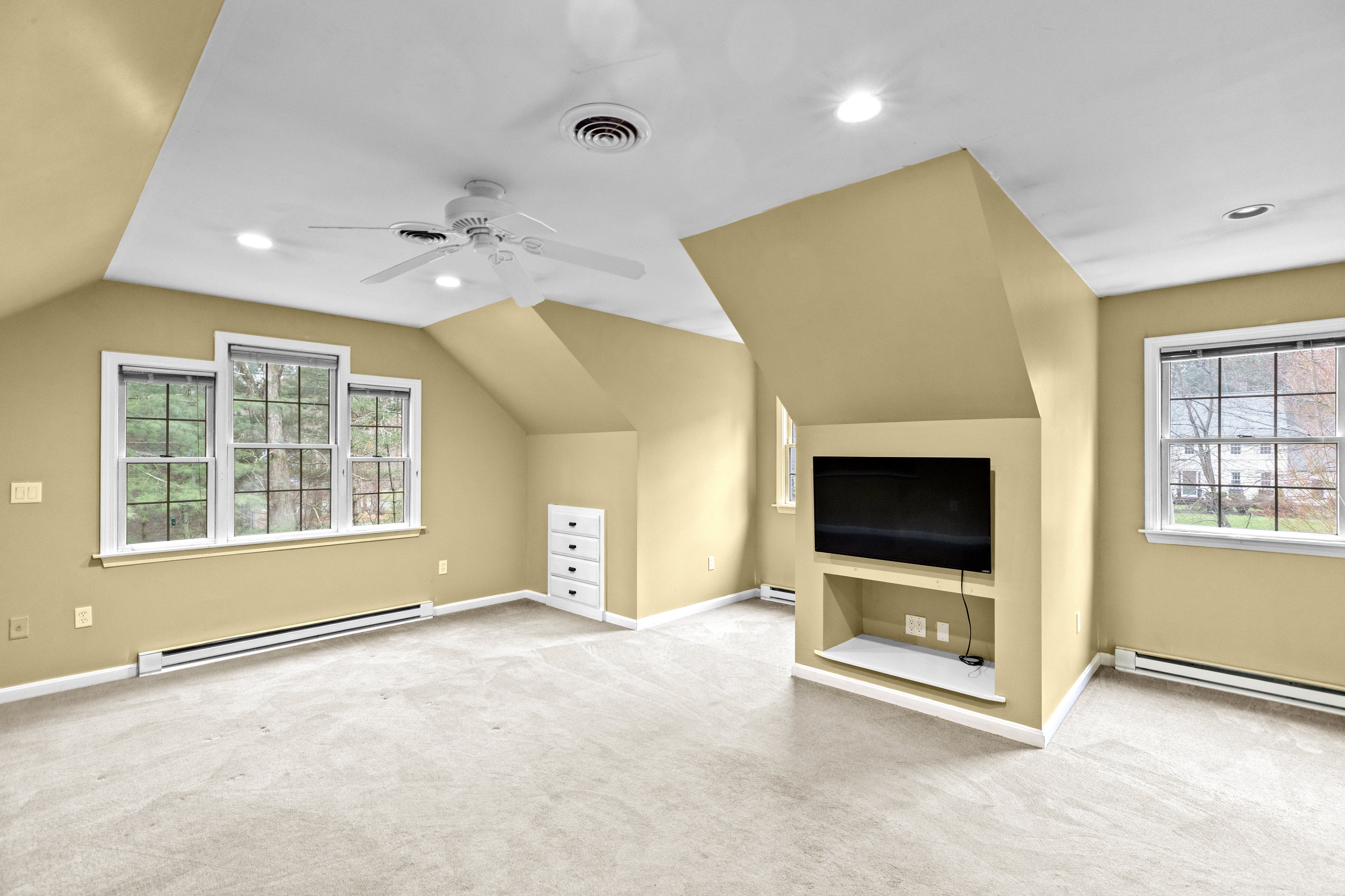 • The finished lower level includes bonus rooms, a full bath, kitchenette, laundry hookups, and an English-style wet bar